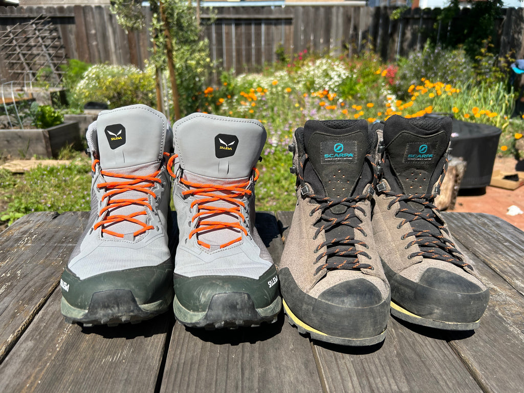 They’re a touch heavier at 19 ounces per boot, but still much lighter than traditional plodders. You absolutely can’t go wrong with these, and they’re by far the best all-round hiking boots I’ve ever had. Really. But if I think I can get away with something just a little softer, I go with the Salewas.