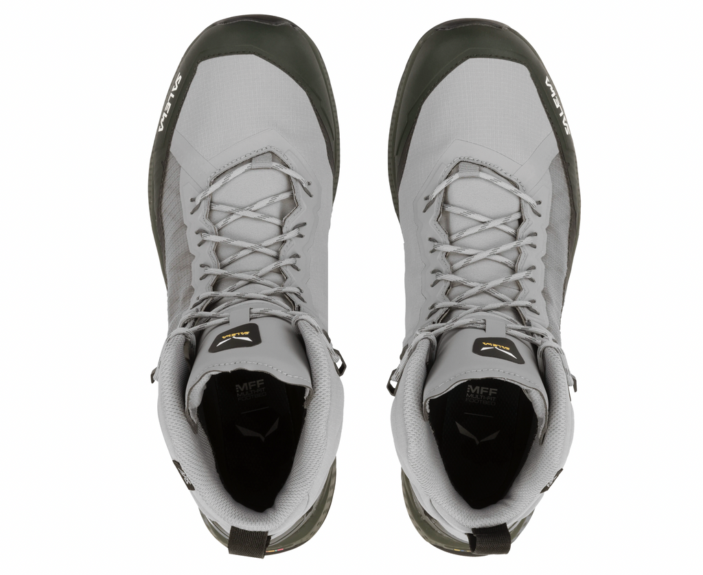 It’s a very lightweight boot, at 13.7 ounces per shoe for a mens size 9.5. My size 12 is no doubt a smidge heavier, but these are easily the lightest ankle-covered shoes in my closet. They’re waterproof, with, thankfully, a PFC-free membrane. The outsole is a POMOCA brand multi-directional lug that are as grippy as you’d like, which makes sense because POMOCA is mostly known for its climbing skins. The uppers are ripstop that indeed cannot be abraded, and there are even kevlar cables adding stiffness and protection beneath the upper fabric material.