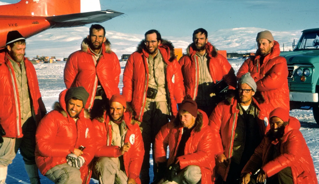 Nicholas Clinch standing, middle of back row. American Antarctic Mountaineering Expedition. Photo: via AAC.