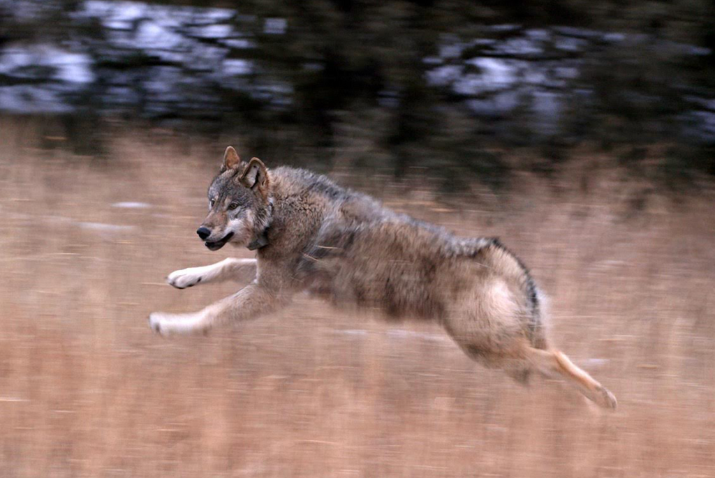 The grey wolf in the metal crate tenses as the door unexpectedly opens. Through the bright threshold, he sees a field of winter grasses laced with snow and a line of juniper trees. After a moment, he bolts for the trees, disappearing into their shadows. And he keeps running.