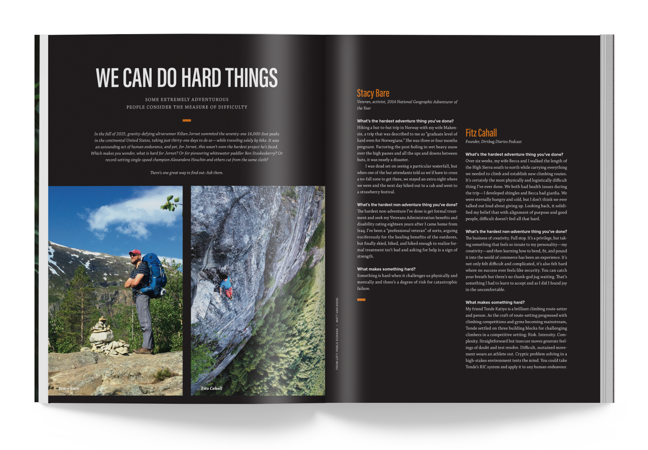 Adventure Journal is printed quarterly and delivered to subscribers in March, June, September, and December. Stories that appear in print are only available in print.